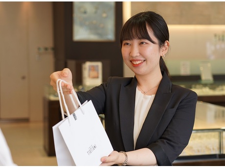 キラキラしたジュエリーに囲まれながら、たくさんの笑顔に出会える職場です。